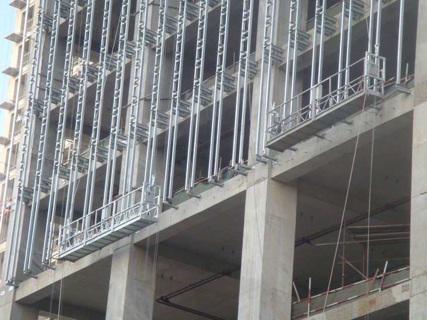 Suspended platform is a construction tool for high-altitude operations in construction projects, mainly used for curtain wall installation, exterior wall cleaning and other operations. It is erected on a building or structure through a suspension mechanism, and the suspension platform is driven by a lifting mechanism. It runs up and down along the facade of the building or structure through a wire rope to provide a safe working platform for operators.